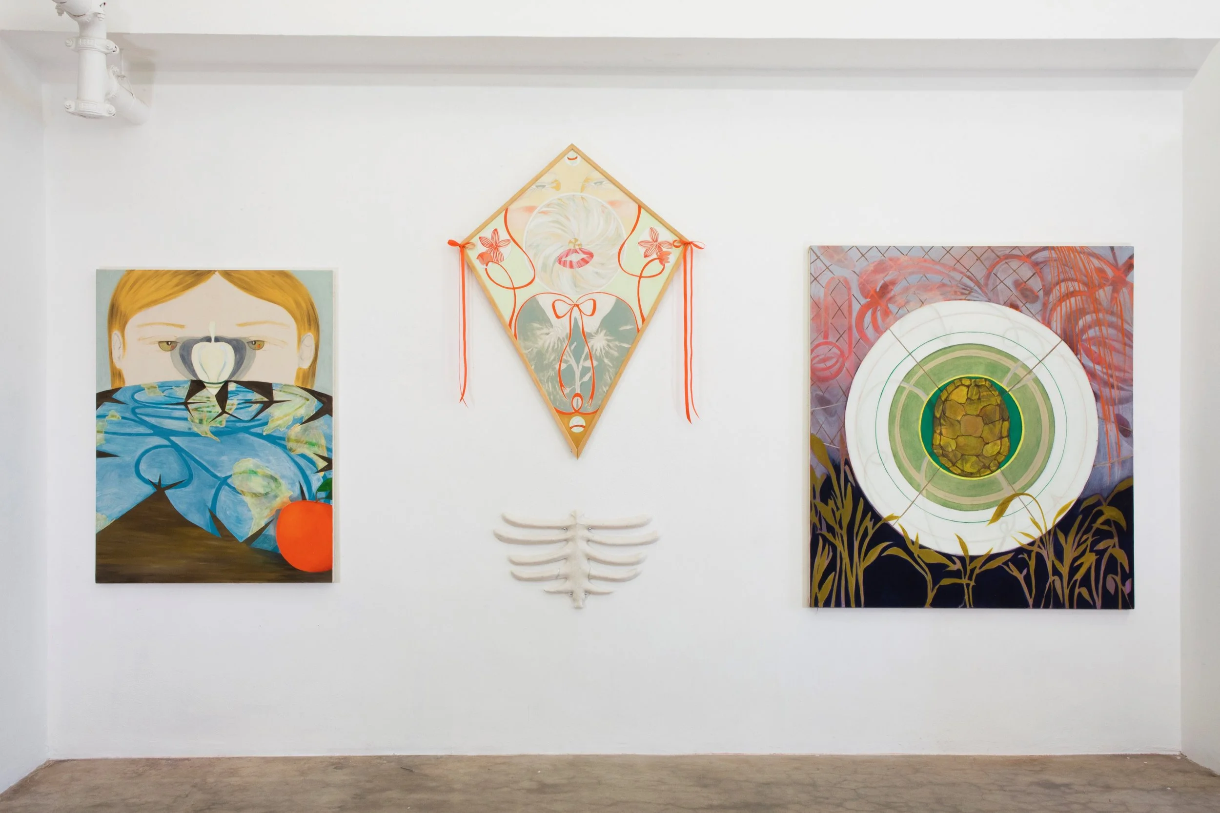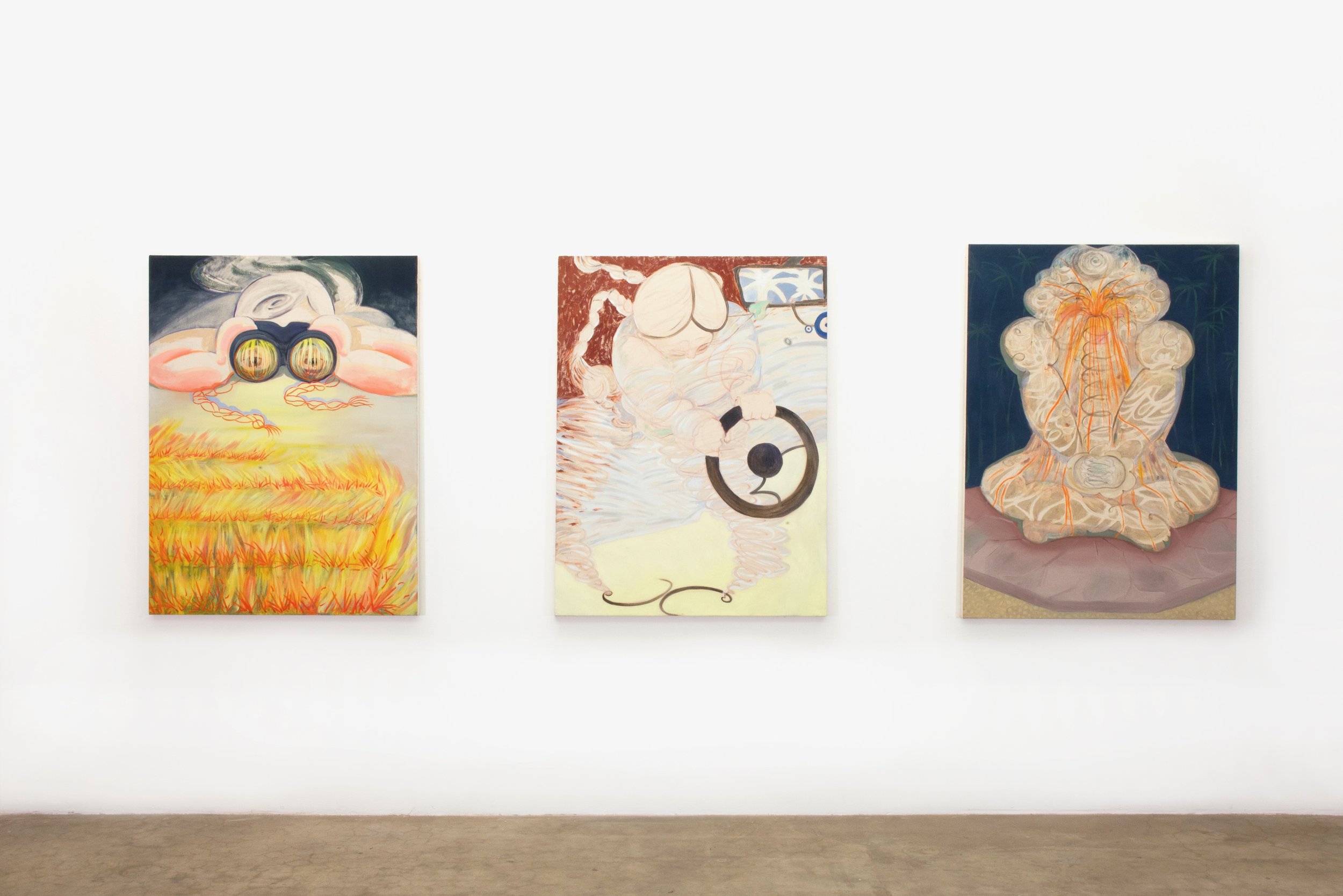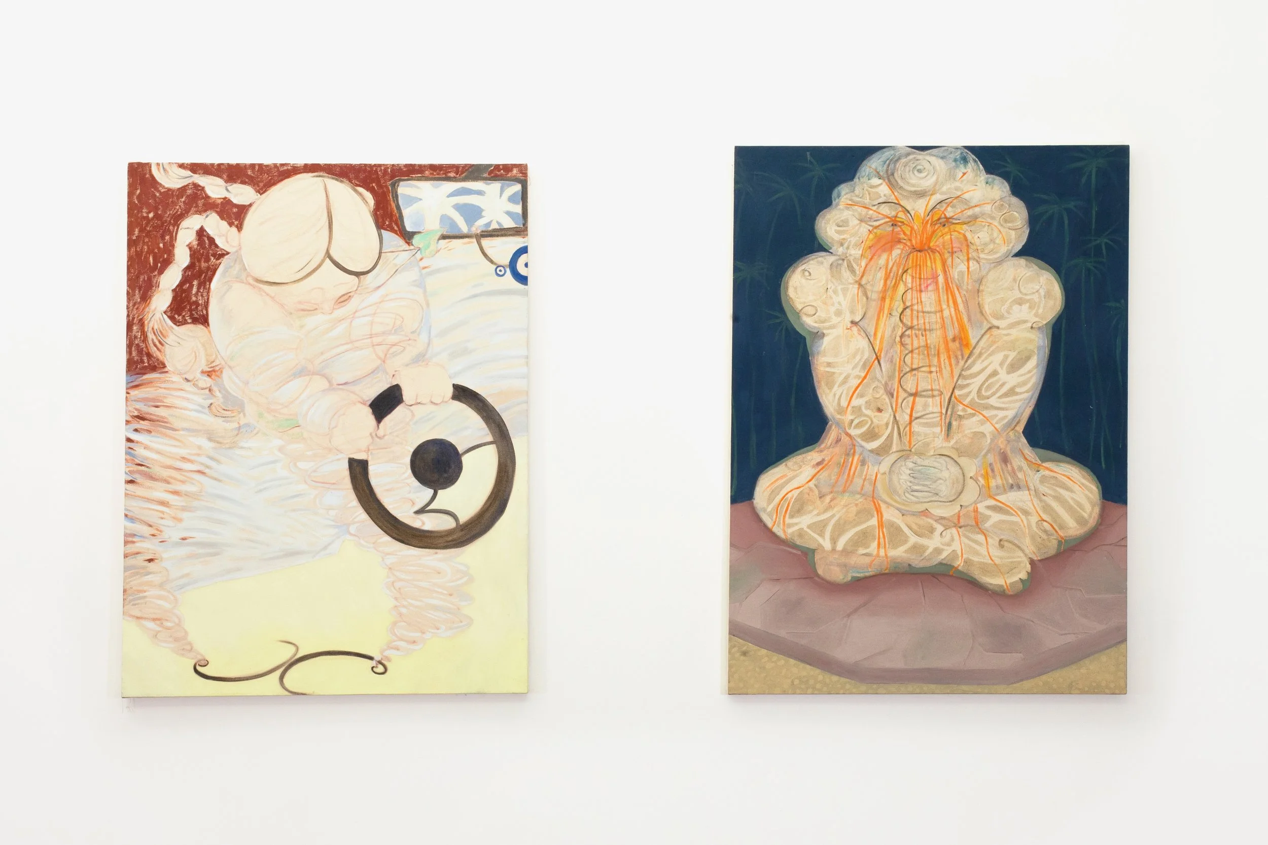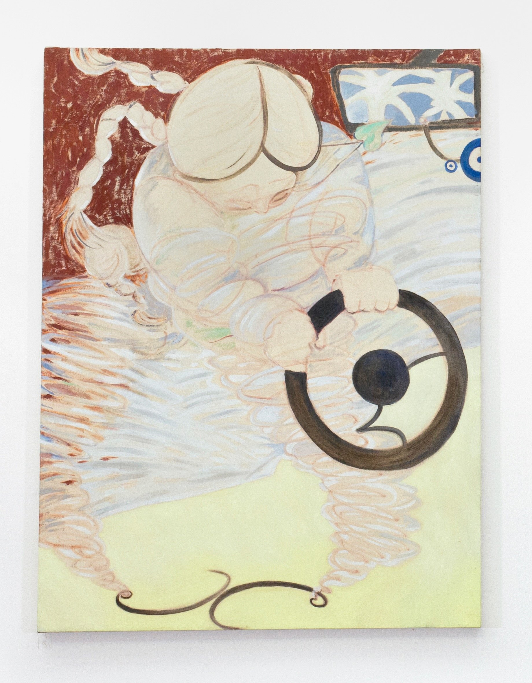 Seasons of Unravelling features Calliope Pavlides’ latest body of work that formed during a challenging year. With her series of paintings starring embodied natural disasters, Pavlides marks time by creating a metaphor for the pandemic as a personal apocalypse. Digesting her experience through a set of dark tales on canvas enables her to dream of a sunnier reality. The title refers to “unravelling” as the motion of spiralling out of control, as well as the idealistic anticipation for a disentangled world. Using line as a form of unravelling, her brushwork spins, loops, and breathes, in a kind of reckless abandonment to motion. Despite the dark undertones of the subject matter, Pavlides’ mark-making and narrative playfulness bring a lightness to these works. At times, she takes on a child’s perspective, assigning human features to a spring breeze and repeatedly filling in the cracks with rainbows. The show includes 9 paintings on canvas and 9 works on paper